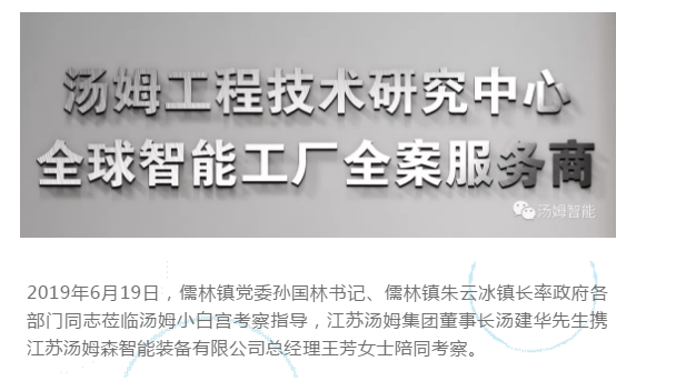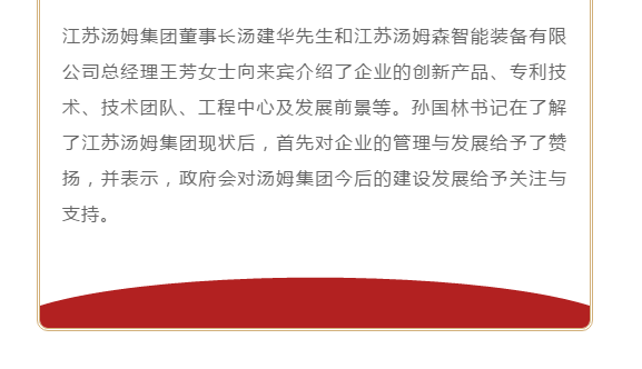 江蘇湯姆集團熱烈歡迎儒林鎮黨委孫國林書(shū)記等一行領(lǐng)導的蒞臨考察