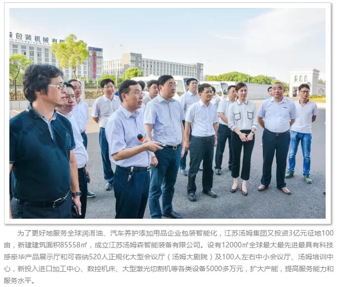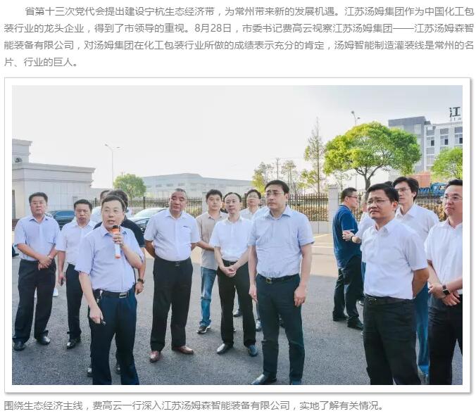 中共常州市委書(shū)記費高云視察江蘇湯姆集團 對湯姆在化工包裝行業(yè)所做的成績(jì)表示充分的肯定