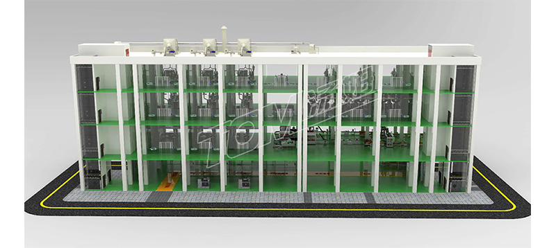 車(chē)間布局共總分為四層,四層主要是投料區和物料暫存區,三層液體制劑主要是復配區和砂磨區,固體制劑主要是粉碎區和混合區。二層液體制劑主要是包材暫存區,固體制劑主要是干燥區和成品出料區。一層是包裝線(xiàn)和成品暫存區。