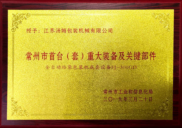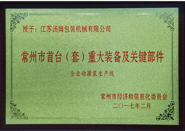 常州市首臺(套)重大裝備企業(yè)