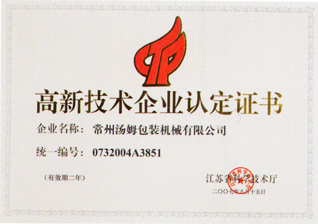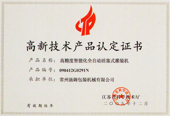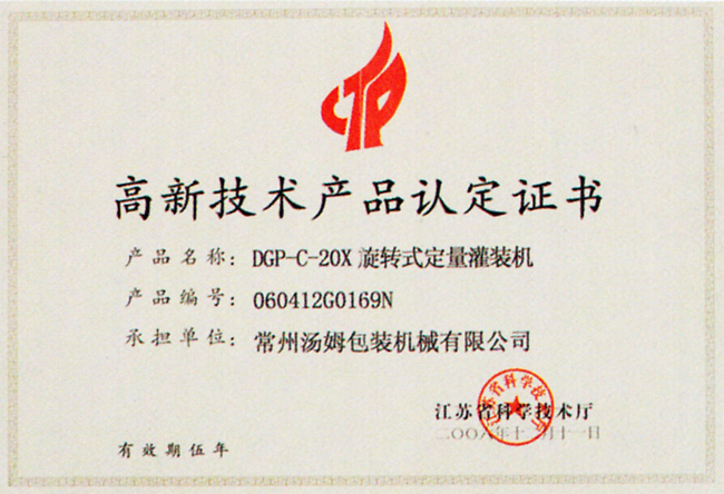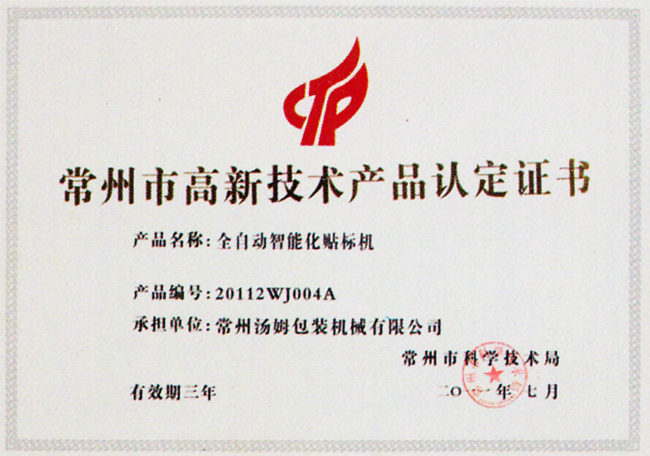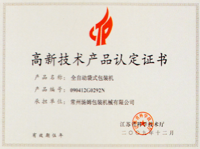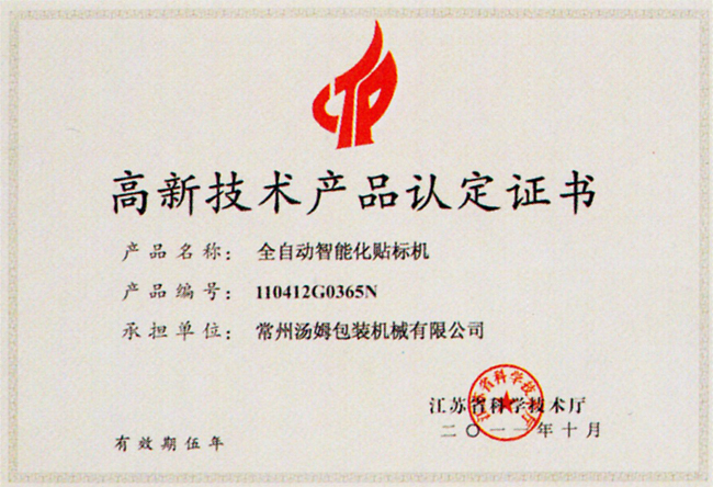 高新技術(shù)產(chǎn)品認定證書(shū)