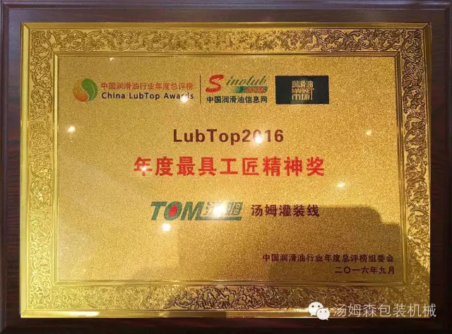 【喜訊】特約冠名單位江蘇湯姆集團榮膺 LubTop2016年度行業(yè)供應鏈金牌服務(wù)商和LubTop2016 年度具工匠精神獎