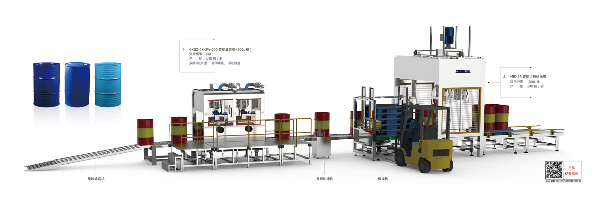 1、本線(xiàn)適用于農藥、化工200L桶包裝規格產(chǎn)品灌裝。