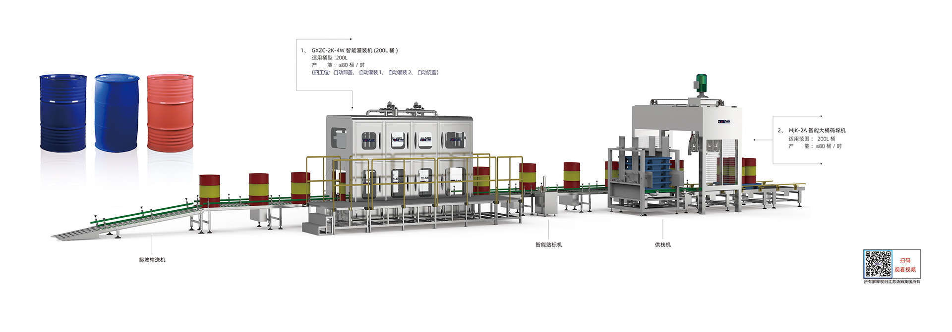 1、本線(xiàn)適用于農藥、化工200L桶包裝規格產(chǎn)品灌裝。